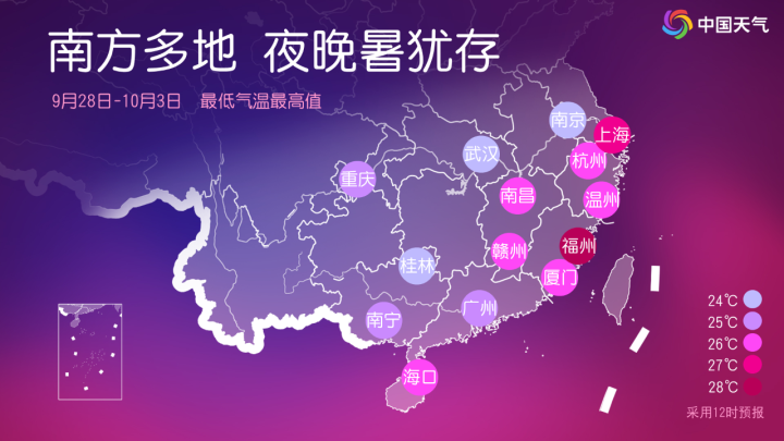 国庆假期前,南方最高气温30℃以上区域将再度向西扩展,天气变得闷热起来,江西、浙江、福建等地还会有高温现身。像今天,杭州气温再度冲上35℃,拿下今年第64个高温日,继续刷新当地1951年以来全年高温日数最多纪录。