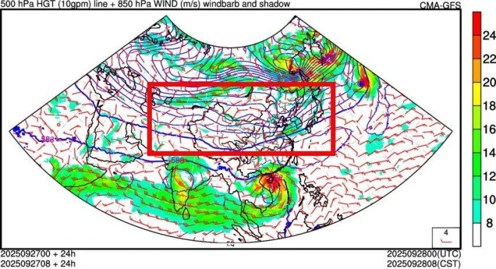 ↑以28日形势场图为例,中高纬地区上空的等压线相对水平,即大体上以纬向环流为主,起伏波动不算很明显。